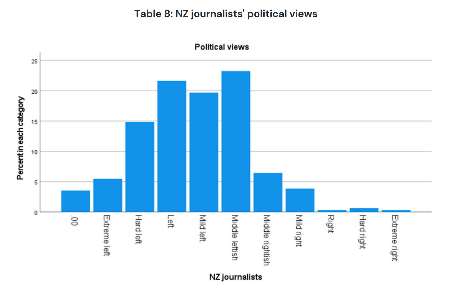In terms of bias, there’s some interesting evidence about the self-declared ideological leanings of journalists in Massey University’s Worlds of Journalism survey in 2022. It found that about two-thirds (65 per cent) of journalists identify as being leftwing, 23 per cent call themselves centrists, and 12 per cent say that are rightwing – see: Worlds of Journalism Study 2.0. Journalists in Aotearoa/ New Zealand